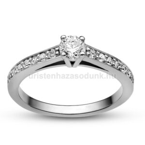 | GYŰRŰ ADATOK | Gyűrű színe: Fehér Anyag és finomság: Fehér arany, 14k (585‰) Súly: 2.10 g Stílus: Oldalt köves |