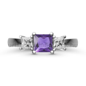 | KÖVEZÉS RÉSZLETEI | Kövek fajtája: Ametiszt – gyémánt Kövek száma: 3 db Kövek átmérője: 4.50×4.50; 2×3.00×3.00 mm Ametiszt kő színe: Violet Ametiszt kő tisztasága: AAA Ametiszt kő csiszolása: Princess, szögletes Ametiszt kő átmérője: 4.50×4.50 mm Gyémánt kövek színe: Fehér, G-H Gyémánt kövek tisztasága: VS Gyémánt kövek átmérője: 2×3.00×3.00 mm |