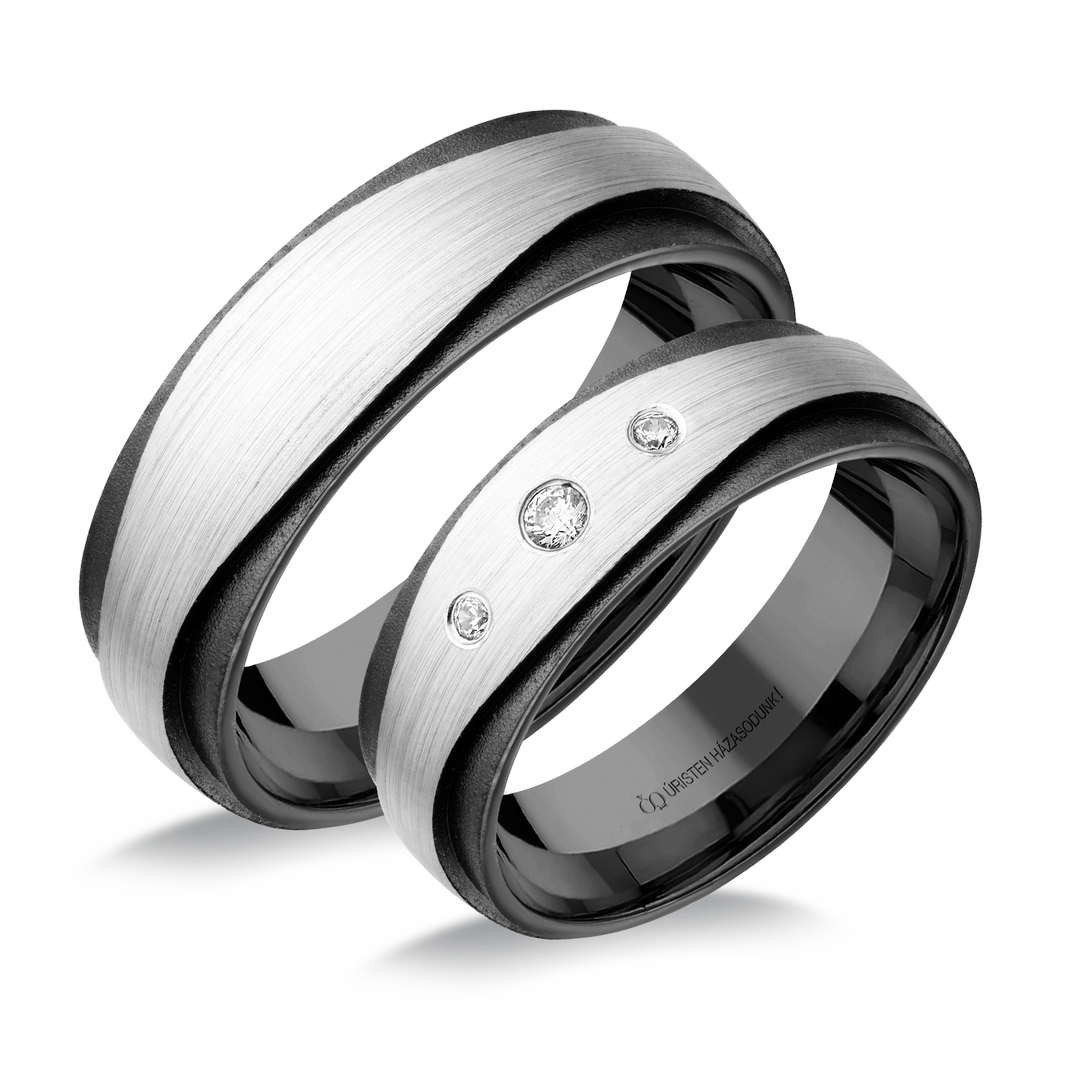 | GYŰRŰ ADATOK | Gyűrű színe: Fehér és fekete (fekete ródiumtól) Anyag és finomság: Fehér arany, 14k (585‰) Szélesség: 6.0 mm Súly: 13.60 g Felület: Matt Külső profil: Enyhén domború Belső profil: Enyhén domború Megmunkálás: Modern technológiával megmunkált. Forrasztásmentes gyűrű. |
